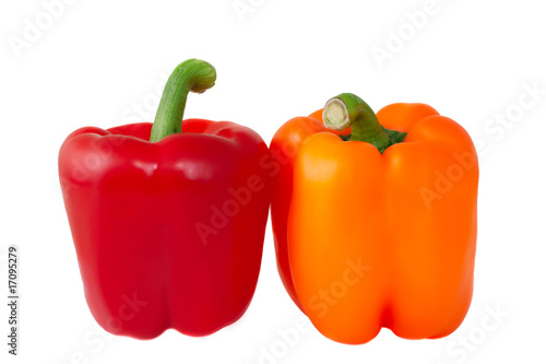 Two fresh peppers in row