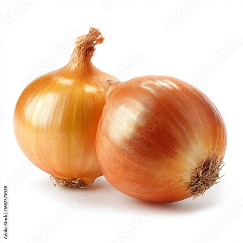Two fresh, whole onions with brown skin ready to be used for culinary creations. A healthy, flavorful ingredient, perfect for cooking