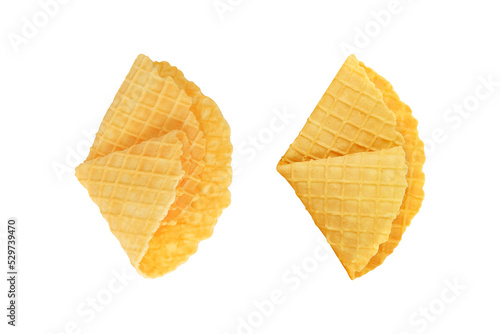 two freshly baked belgian waffles isolated on white background with clipping path include for design usage purpose., top view