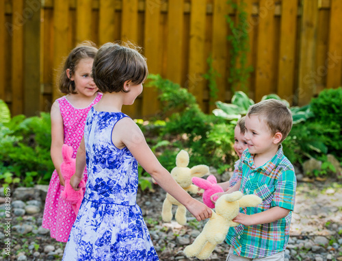 Two Girls and Two Boys Playing Ring Around the Rosie