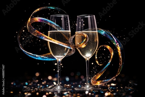 Two glasses of champagne with a heart-shaped decoration. Perfect for celebrating special occasions