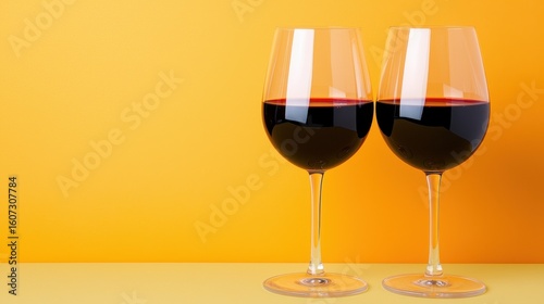 Two Glasses of Red Wine on Yellow Background