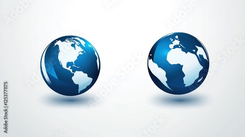 Two glossy blue globes, Earth, abstract, graphic design, possible use educational illustration