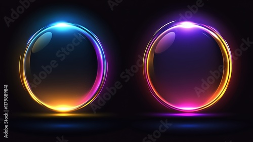 Two glowing orbs with vibrant neon light effects