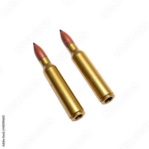 Two gold-colored bullet-shaped objects with pointed tips and a smooth finish.