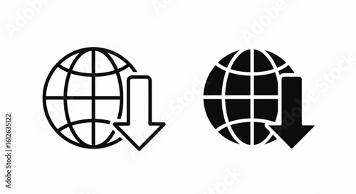 Two graphic representations of a globe with a downward-pointing arrow, symbolizing download.