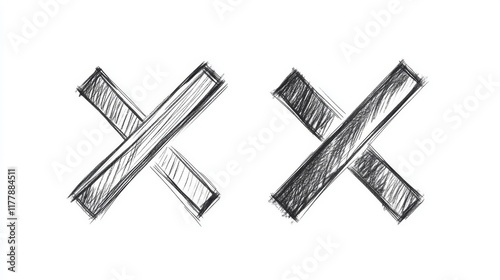Two grunge hand drawn brush strokes - cross x and check mark on. Check boxes for NO and YES buttons to vote in checkbox, list, online. Agreement and disagreement symbol isolated on white. vector