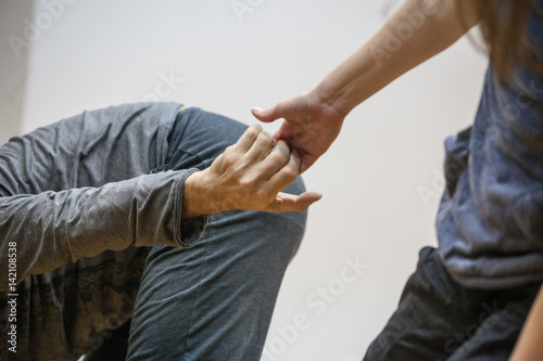 two hand dance.The hands of the dancers are drawn to each other.dancers' hands support each other