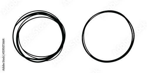 Two hand drawn circles on white background one messy and one clean representing ideas or concepts vector illustration