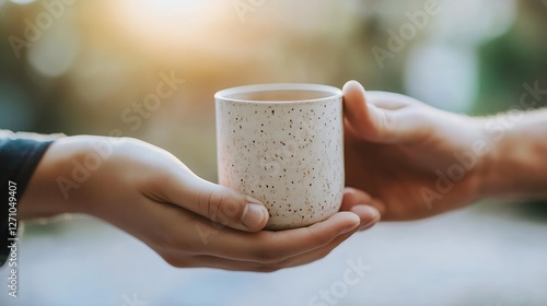 Two hands exchanging a cozy cup symbolizing warmth and connection : Generative AI
