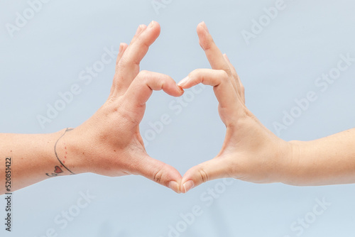 Two hands gesturing on a blue background