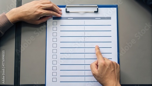 Two hands interacting with a clipboard featuring a checklist, emphasizing organization and task management.