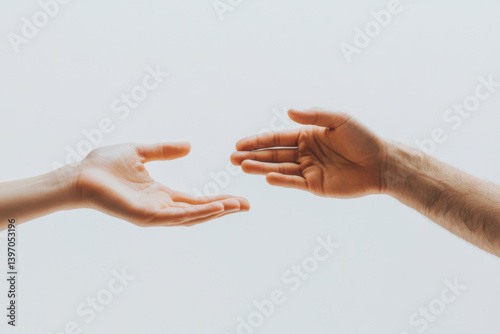 Two hands reaching out to connect, symbolizing trust and unity in a peaceful setting