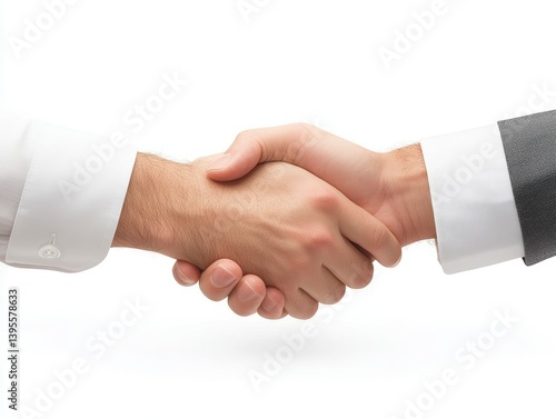 Two Hands Shaking in Agreement Against White Background