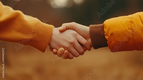 Two hands shaking, symbolizing agreement and friendship against a blurred background.