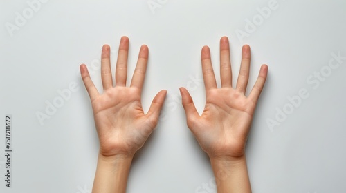 Two hands with nails painted in a light pink color