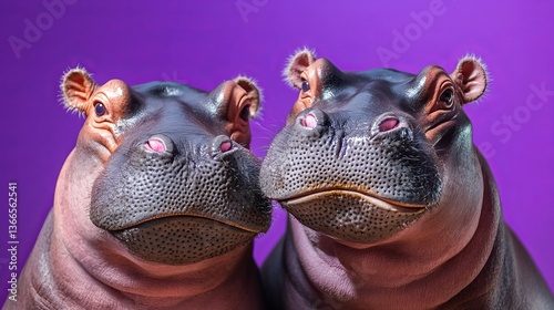 Two hippopotamus portrait close up adorable hippos animal wildlife photography purple background zoo animals