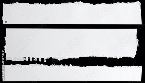 Two horizontal strips of ripped white paper on black background