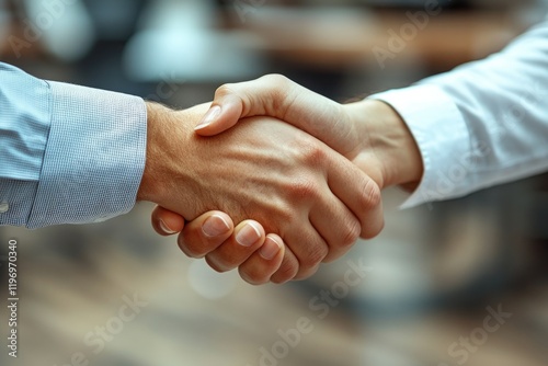 Two individuals shake hands in a close-up shot