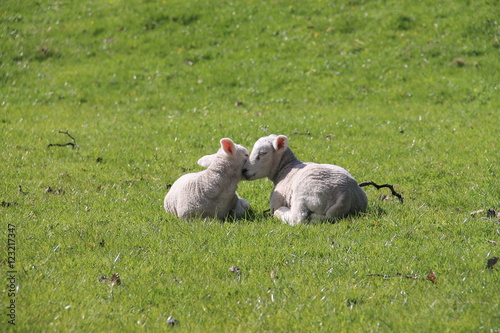 Two lambs cuddling and being affectionate