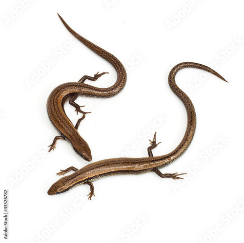 Two lizards on a white background