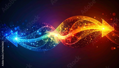 Two luminous, intertwined arrows symbolizing duality, interaction, and energetic flow on a dark background.