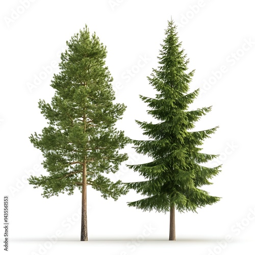 Two Lush Evergreen Trees on White Background