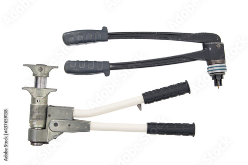 two mechanical tools for crimping plastic water pipes, on a white background