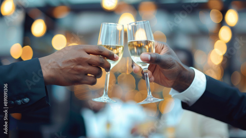 Two men are raising their wine glasses in a toast