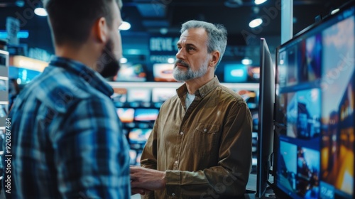 Two men are talking in a store