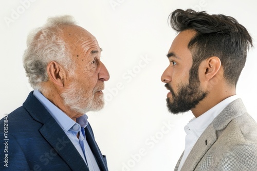Two men in business suits standing side by side. Suitable for corporate and professional concepts