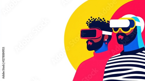 Two Men Wearing Virtual Reality Headsets with Colorful Backgrounds