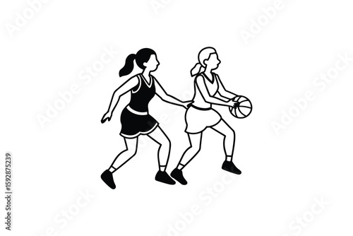 Two Netball Players in Action One Passing the Ball Black and White Silhouette