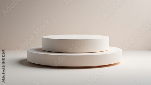 Two Off White Cylindrical Platforms Beige Background