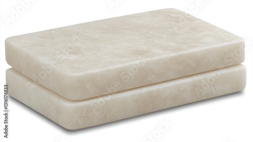 Two off white rectangular marble slabs stacked on a white background. The marble has a subtle texture and slight variations in tone.