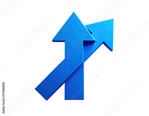 Two overlapping, stylized blue arrows pointing upward, a 3D rendering against a black background