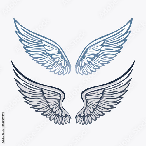 Two pairs of stylized angel wings in blue and grey tones bird wings stylized wings