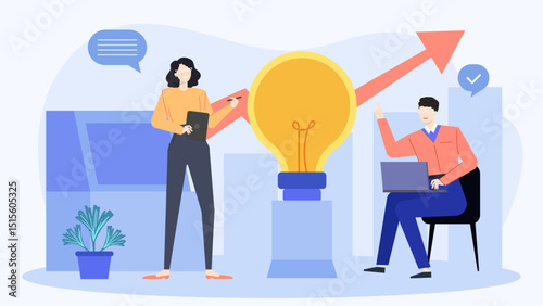 Two people collaborating on a project, brainstorming, discussing ideas. Suitable for teamwork, business partnership, office environment, cooperation concepts.