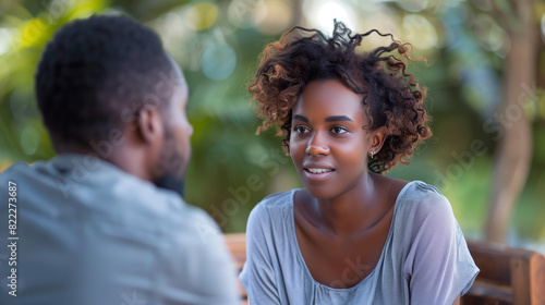 two people engaged in deep conversation, one listening attentively while other shares thoughts, emotions. Listener's expression reflects empathy, understanding, conveying sense of connection, support