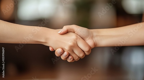 Two people shake hands, a gesture of agreement or friendship.