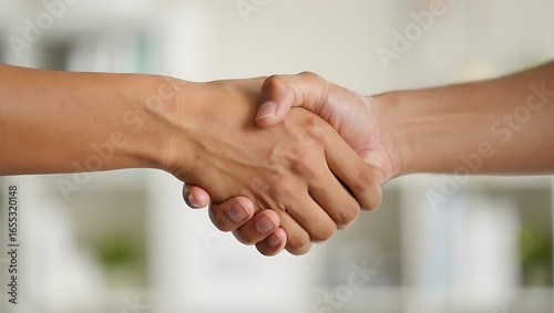 Two People Shaking Hands in a Friendly Greeting Agreement and Partnership Confirmation