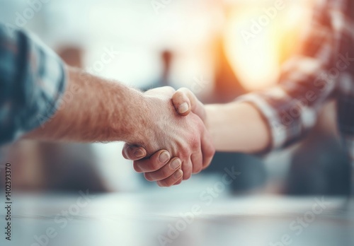 Two people shaking hands in a professional setting, conveying a sense of trust and agreement.