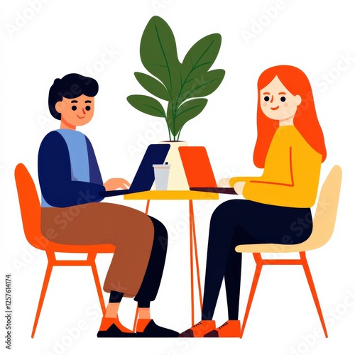 two People working at a Table with Laptops