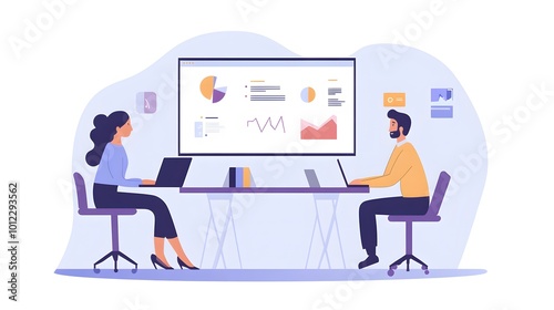 Two People Working on Laptops in Front of a Large Presentation Screen