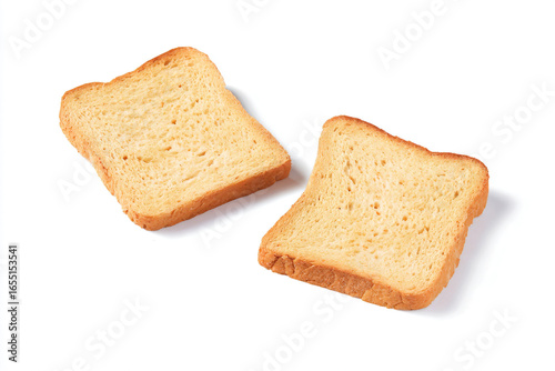 two pieces of bread sitting on top of a white surface