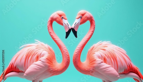 Two pink flamingos facing each other forming a heart on a light blue background symbolizing love and affection for special occasions