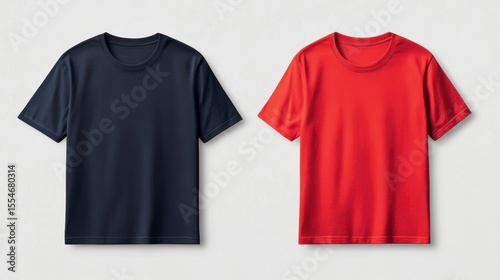 Two plain t-shirts, one navy blue and one red, shown on a white background.