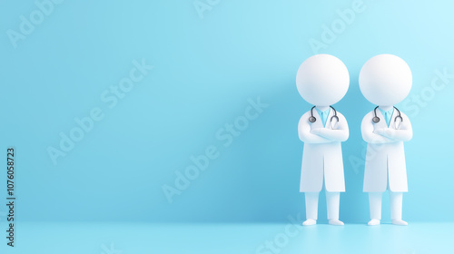 Two professional characters in lab coats symbolize teamwork in healthcare.