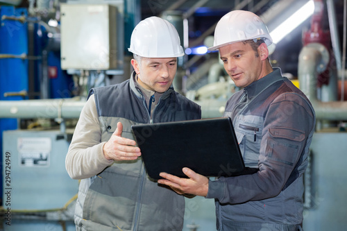 two protective line worker in factory
