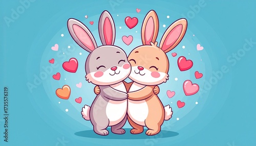 Two Rabbits Hugging. A heartwarming illustration of two cartoon rabbits giving each other a big, warm hug.